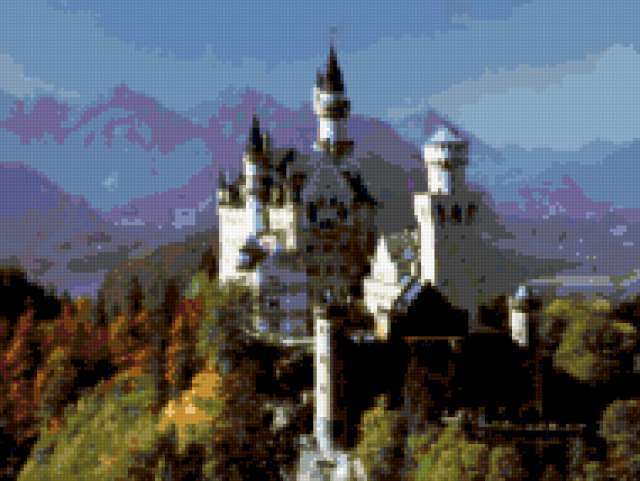 Ориентировочно так, схема вышивки «Замок 2», созданная автором medea-30, будет выглядеть при отшиве на канве. Размер данной вышивки равен 190x143 крестов, при этом используется 54 цветов. Ключевые слова, по которым можно найти эту схему: пейзаж, картина, лето, замок. Также, вы можете взглянуть на оригинальную картинку, соответствующую данной схеме вышивки.