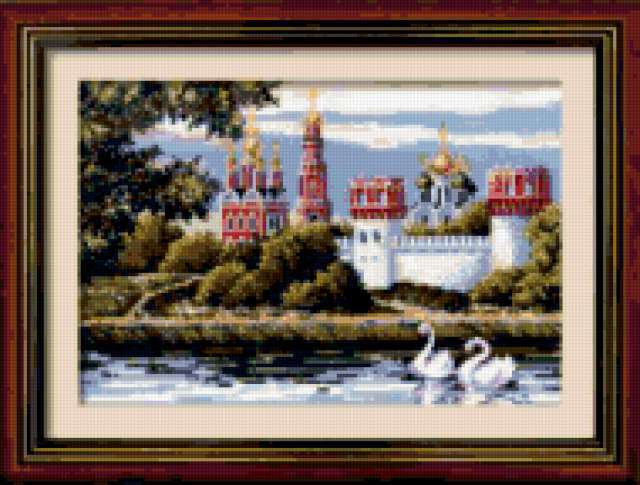 Ориентировочно так, схема вышивки «Замок», созданная автором xa00p3857, будет выглядеть при отшиве на канве. Размер данной вышивки равен 190x144 крестов, при этом используется 79 цветов. Ключевые слова, по которым можно найти эту схему: картина, пейзаж, замок, крепость, пруд, озеро, птицы, лебеди, лето. Также, вы можете взглянуть на оригинальную картинку, соответствующую данной схеме вышивки.