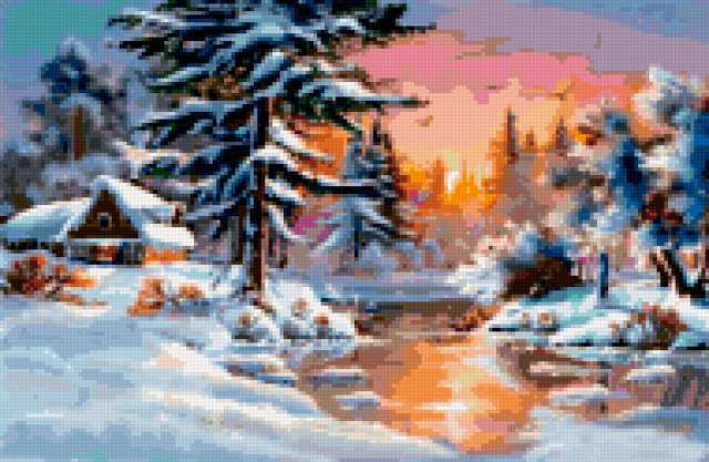Ориентировочно так, схема вышивки «Зимний лес», созданная автором nizova, будет выглядеть при отшиве на канве. Размер данной вышивки равен 190x124 крестов, при этом используется 89 цветов. Ключевые слова, по которым можно найти эту схему: новый год. Также, вы можете взглянуть на оригинальную картинку, соответствующую данной схеме вышивки.