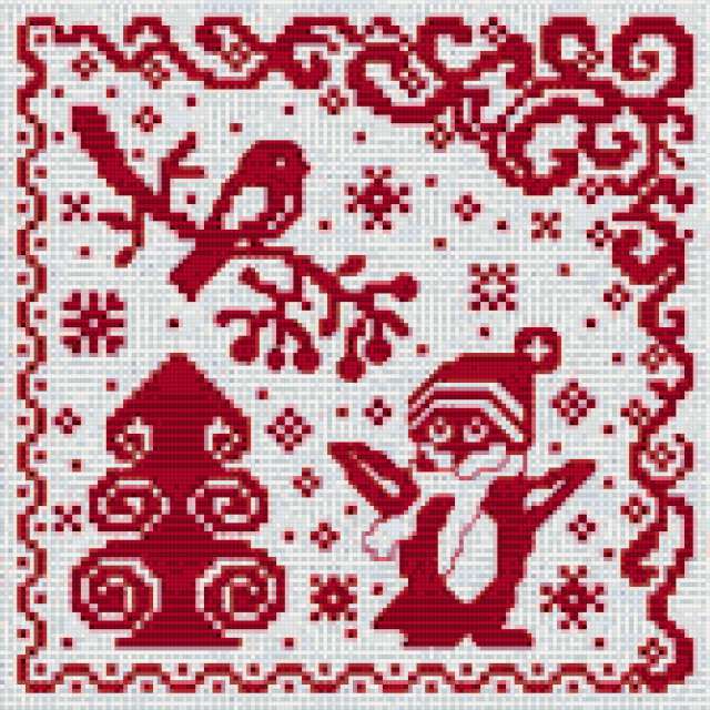 Ориентировочно так, схема вышивки «Зимняя картина», созданная автором poltanya, будет выглядеть при отшиве на канве. Размер данной вышивки равен 167x167 крестов, при этом используется 17 цветов. Ключевые слова, по которым можно найти эту схему: зимняя картина, зима, снег, детские сюжеты, новый год, рождество, праздник, пингвины, птицы, подушка. Также, вы можете взглянуть на оригинальную картинку, соответствующую данной схеме вышивки.