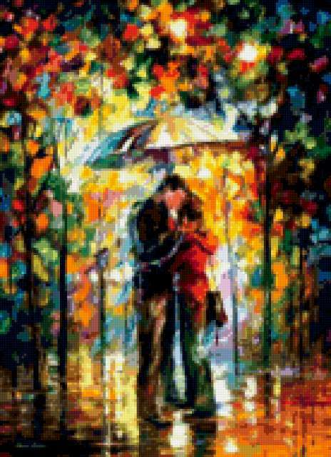 Ориентировочно так, схема вышивки «Зонтик», созданная автором olesya1587, будет выглядеть при отшиве на канве. Размер данной вышивки равен 138x190 крестов, при этом используется 87 цветов. К несчастью, автор не назначил для схемы ключевые слова. Также, вы можете взглянуть на оригинальную картинку, соответствующую данной схеме вышивки.