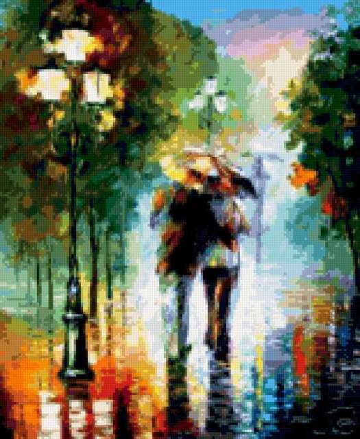 Ориентировочно так, схема вышивки «Зонтик», созданная автором olesya1587, будет выглядеть при отшиве на канве. Размер данной вышивки равен 156x190 крестов, при этом используется 86 цветов. К несчастью, автор не назначил для схемы ключевые слова. Также, вы можете взглянуть на оригинальную картинку, соответствующую данной схеме вышивки.