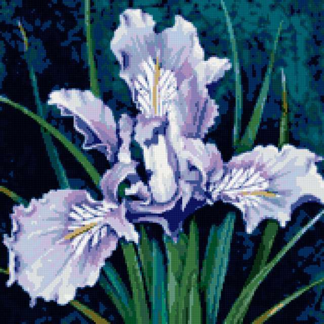Ориентировочно так, схема вышивки «ИРИС», созданная автором poltanya, будет выглядеть при отшиве на канве. Размер данной вышивки равен 176x176 крестов, при этом используется 34 цветов. Ключевые слова, по которым можно найти эту схему: ирис, ирисы, нежные лепестки, садовые цветы, цветы, цветочки, флора, растения, живопись, искусство, красота. Также, вы можете взглянуть на оригинальную картинку, соответствующую данной схеме вышивки.