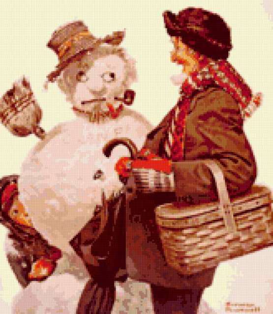 Ориентировочно так, схема вышивки «Игра в снежки», созданная автором rybka6, будет выглядеть при отшиве на канве. Размер данной вышивки равен 165x190 крестов, при этом используется 38 цветов. Ключевые слова, по которым можно найти эту схему: ретро, искусство, живопись, картина, зима, снеговик, метла, карзинка, зонт, мужчина, дети, мальчик, шалун, юмор. Также, вы можете взглянуть на оригинальную картинку, соответствующую данной схеме вышивки.