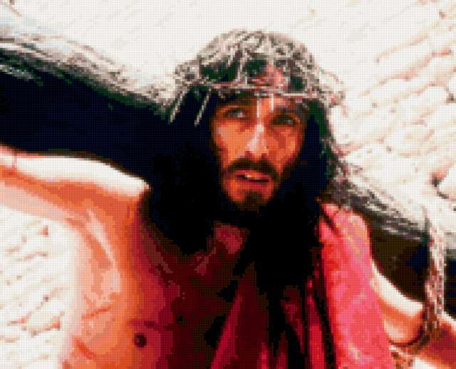 Ориентировочно так, схема вышивки «Иисус», созданная автором vthreitdfbhbyfdf, будет выглядеть при отшиве на канве. Размер данной вышивки равен 190x154 крестов, при этом используется 65 цветов. Ключевые слова, по которым можно найти эту схему: икона. Также, вы можете взглянуть на оригинальную картинку, соответствующую данной схеме вышивки.