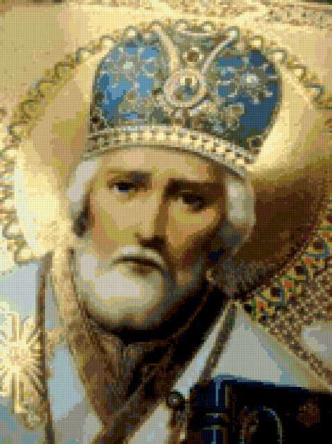 Ориентировочно так, схема вышивки «Икона», созданная автором lilya0505, будет выглядеть при отшиве на канве. Размер данной вышивки равен 140x187 крестов, при этом используется 59 цветов. К несчастью, автор не назначил для схемы ключевые слова. Также, вы можете взглянуть на оригинальную картинку, соответствующую данной схеме вышивки.