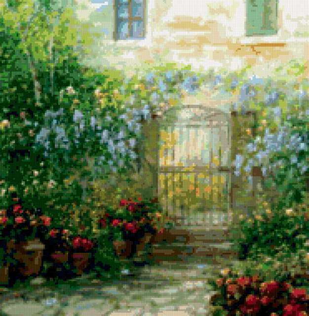 Ориентировочно так, схема вышивки «Итальянский пейзаж», созданная автором 13197, будет выглядеть при отшиве на канве. Размер данной вышивки равен 186x190 крестов, при этом используется 77 цветов. Ключевые слова, по которым можно найти эту схему: пейзаж, италия, картина, цветы. Также, вы можете взглянуть на оригинальную картинку, соответствующую данной схеме вышивки.