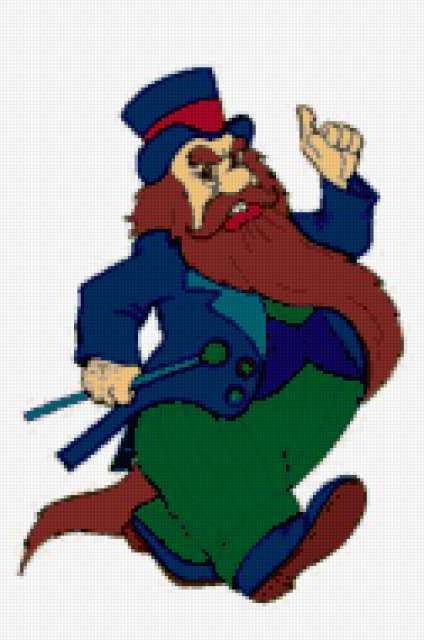 Ориентировочно так, схема вышивки «Карабас Барабас», созданная автором burova, будет выглядеть при отшиве на канве. Размер данной вышивки равен 126x190 крестов, при этом используется 34 цветов. Ключевые слова, по которым можно найти эту схему: картинки, в детскую, сказки, мультики. Также, вы можете взглянуть на оригинальную картинку, соответствующую данной схеме вышивки.