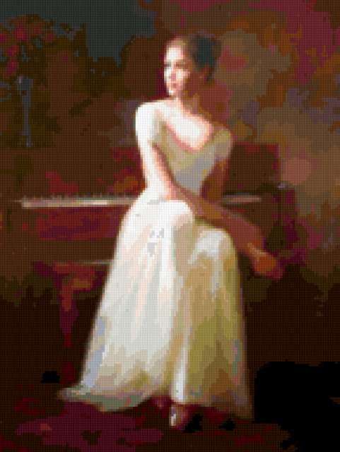 Ориентировочно так, схема вышивки «Картины художника Kelvin Lei», созданная автором swetik-swetik, будет выглядеть при отшиве на канве. Размер данной вышивки равен 143x190 крестов, при этом используется 62 цветов. Ключевые слова, по которым можно найти эту схему: картина, картинка, картины, картинки, рисунок, рисунки, искусство, человек, люди, женщина, девушка, балерина, балет. Также, вы можете взглянуть на оригинальную картинку, соответствующую данной схеме вышивки.