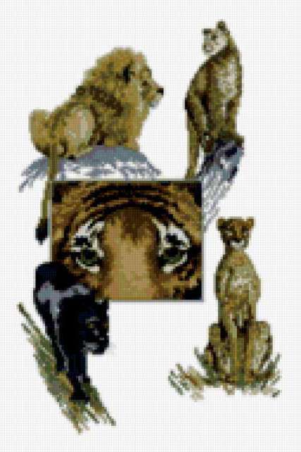 Ориентировочно так, схема вышивки «Киски», созданная автором -tatka-, будет выглядеть при отшиве на канве. Размер данной вышивки равен 127x190 крестов, при этом используется 51 цветов. Ключевые слова, по которым можно найти эту схему: животные, кошки. Также, вы можете взглянуть на оригинальную картинку, соответствующую данной схеме вышивки.