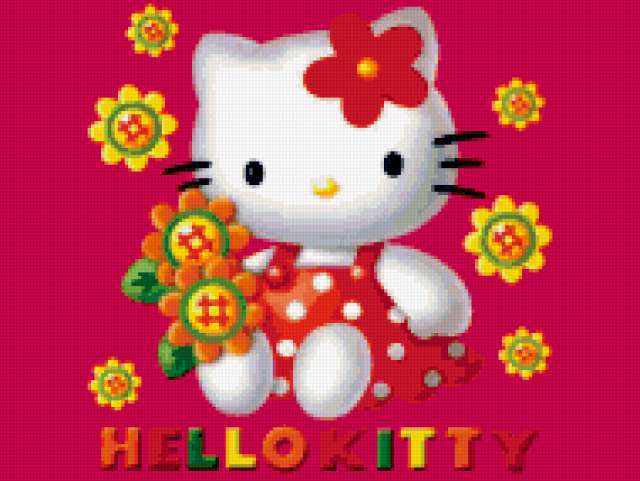 Ориентировочно так, схема вышивки «Китти», созданная автором 777Svetlana777, будет выглядеть при отшиве на канве. Размер данной вышивки равен 190x143 крестов, при этом используется 70 цветов. Ключевые слова, по которым можно найти эту схему: китти, кошки, детская, котёнок. Также, вы можете взглянуть на оригинальную картинку, соответствующую данной схеме вышивки.
