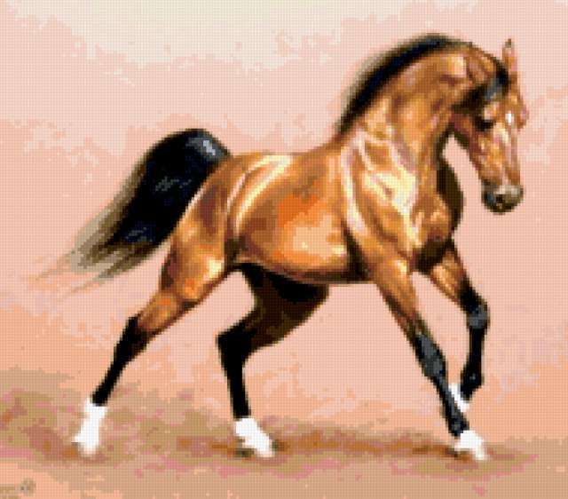 Ориентировочно так, схема вышивки «Конный мир», созданная автором rybka6, будет выглядеть при отшиве на канве. Размер данной вышивки равен 190x167 крестов, при этом используется 42 цветов. Ключевые слова, по которым можно найти эту схему: животные, домашние, бег, свободный, буланая, красота, лошадь, жеребёнок, всадник, военный, солдат, генерал, февраля, победа, лето, река, конь, жеребец, белый, серый, грация. картина, живопись, искусство. Также, вы можете взглянуть на оригинальную картинку, соответствующую данной схеме вышивки.