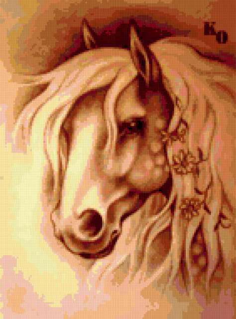 Ориентировочно так, схема вышивки «Конь», созданная автором VA903M, будет выглядеть при отшиве на канве. Размер данной вышивки равен 141x190 крестов, при этом используется 28 цветов. Ключевые слова, по которым можно найти эту схему: лошадь, конь, красавец, жеребец. Также, вы можете взглянуть на оригинальную картинку, соответствующую данной схеме вышивки.