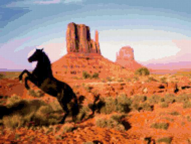 Ориентировочно так, схема вышивки «Конь», созданная автором Karel, будет выглядеть при отшиве на канве. Размер данной вышивки равен 190x143 крестов, при этом используется 66 цветов. Ключевые слова, по которым можно найти эту схему: конь, лошадь, животные. Также, вы можете взглянуть на оригинальную картинку, соответствующую данной схеме вышивки.