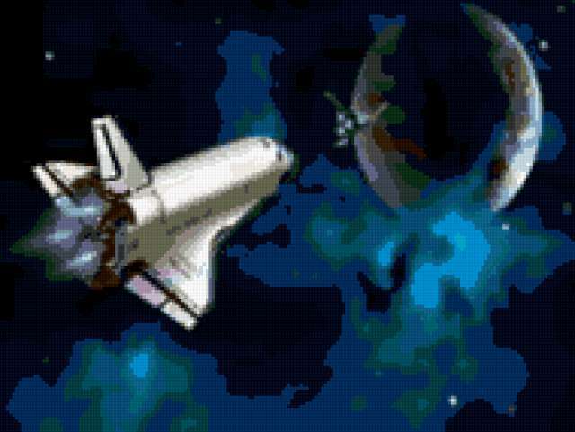 Ориентировочно так, схема вышивки «Космический корабль», созданная автором 21natasha1982, будет выглядеть при отшиве на канве. Размер данной вышивки равен 190x143 крестов, при этом используется 33 цветов. Ключевые слова, по которым можно найти эту схему: космос. Также, вы можете взглянуть на оригинальную картинку, соответствующую данной схеме вышивки.