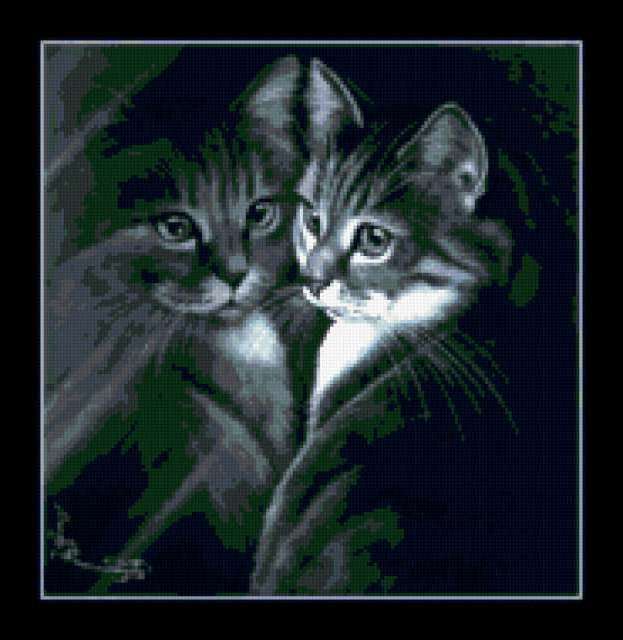 Ориентировочно так, схема вышивки «Кот и зеркало 2», созданная автором VA903M, будет выглядеть при отшиве на канве. Размер данной вышивки равен 185x190 крестов, при этом используется 32 цветов. Ключевые слова, по которым можно найти эту схему: зеркало, кот, отражение, на черном. Также, вы можете взглянуть на оригинальную картинку, соответствующую данной схеме вышивки.