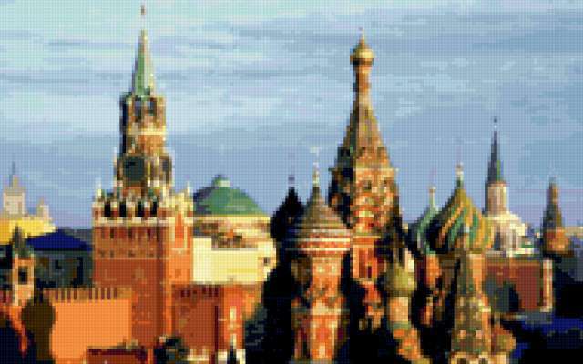 Ориентировочно так, схема вышивки «Кремль», созданная автором VA903M, будет выглядеть при отшиве на канве. Размер данной вышивки равен 190x119 крестов, при этом используется 60 цветов. Ключевые слова, по которым можно найти эту схему: москва, кремль, дворец. Также, вы можете взглянуть на оригинальную картинку, соответствующую данной схеме вышивки.