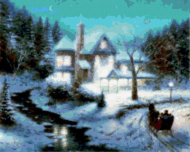 Ориентировочно так, схема вышивки «К...», созданная автором torik, будет выглядеть при отшиве на канве. Размер данной вышивки равен 190x152 крестов, при этом используется 71 цветов. Ключевые слова, по которым можно найти эту схему: пейзаж, домики. Также, вы можете взглянуть на оригинальную картинку, соответствующую данной схеме вышивки.