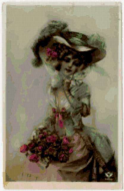 Ориентировочно так, схема вышивки «Леди с розами», созданная автором Fardo, будет выглядеть при отшиве на канве. Размер данной вышивки равен 124x190 крестов, при этом используется 53 цветов. Ключевые слова, по которым можно найти эту схему: женщина, леди, дама. Также, вы можете взглянуть на оригинальную картинку, соответствующую данной схеме вышивки.
