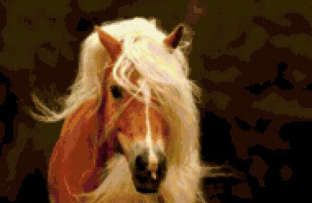 Ориентировочно так, схема вышивки «Лошадь», созданная автором fusion, будет выглядеть при отшиве на канве. Размер данной вышивки равен 190x124 крестов, при этом используется 53 цветов. Ключевые слова, по которым можно найти эту схему: лошадь, конь, животные. Также, вы можете взглянуть на оригинальную картинку, соответствующую данной схеме вышивки.