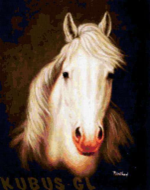 Ориентировочно так, схема вышивки «Лошадь», созданная автором xa00p3857, будет выглядеть при отшиве на канве. Размер данной вышивки равен 151x190 крестов, при этом используется 64 цветов. Ключевые слова, по которым можно найти эту схему: животные, лошадь, конь. Также, вы можете взглянуть на оригинальную картинку, соответствующую данной схеме вышивки.