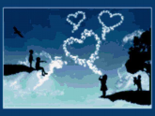 Ориентировочно так, схема вышивки «Любовь», созданная автором lovelife, будет выглядеть при отшиве на канве. Размер данной вышивки равен 165x124 крестов, при этом используется 37 цветов. Ключевые слова, по которым можно найти эту схему: любовь. Также, вы можете взглянуть на оригинальную картинку, соответствующую данной схеме вышивки.