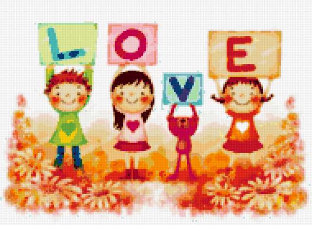 Ориентировочно так, схема вышивки «Любовь», созданная автором cviktoriyac, будет выглядеть при отшиве на канве. Размер данной вышивки равен 190x137 крестов, при этом используется 45 цветов. Ключевые слова, по которым можно найти эту схему: любовь. Также, вы можете взглянуть на оригинальную картинку, соответствующую данной схеме вышивки.