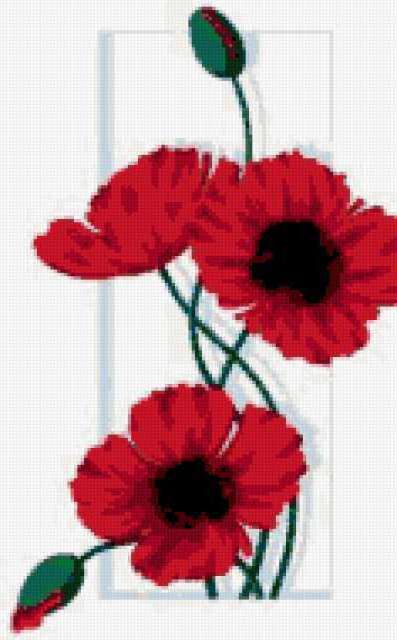 Ориентировочно так, схема вышивки «Маки», созданная автором alena4, будет выглядеть при отшиве на канве. Размер данной вышивки равен 118x190 крестов, при этом используется 31 цветов. Ключевые слова, по которым можно найти эту схему: мак, маки, цветок, цветы, букет. Также, вы можете взглянуть на оригинальную картинку, соответствующую данной схеме вышивки.