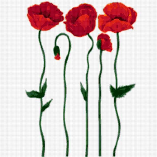 Ориентировочно так, схема вышивки «Маки», созданная автором irabahira, будет выглядеть при отшиве на канве. Размер данной вышивки равен 190x190 крестов, при этом используется 23 цветов. Ключевые слова, по которым можно найти эту схему: цветы, маки, цветок, мак. Также, вы можете взглянуть на оригинальную картинку, соответствующую данной схеме вышивки.