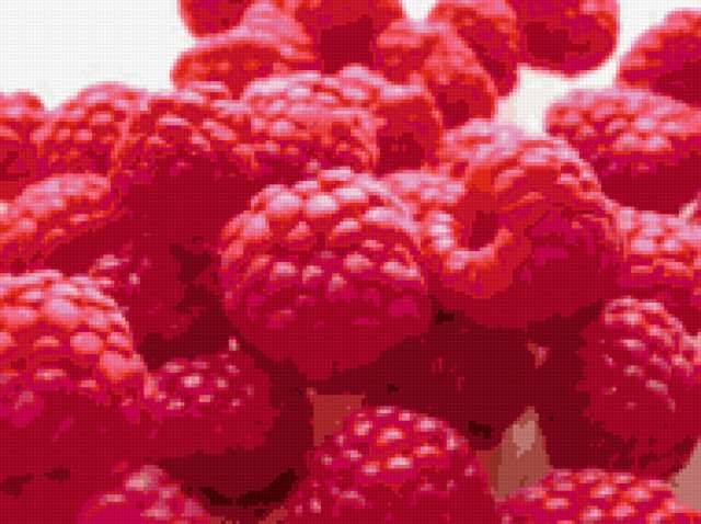 Ориентировочно так, схема вышивки «Малина», созданная автором svkoba, будет выглядеть при отшиве на канве. Размер данной вышивки равен 190x142 крестов, при этом используется 33 цветов. Ключевые слова, по которым можно найти эту схему: малина, фрукты, ягоды. Также, вы можете взглянуть на оригинальную картинку, соответствующую данной схеме вышивки.
