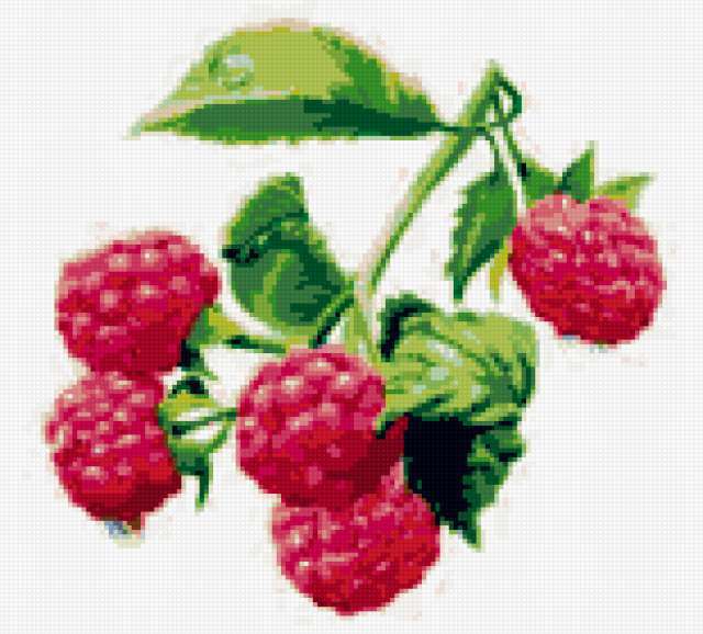 Ориентировочно так, схема вышивки «Малина», созданная автором poltanya, будет выглядеть при отшиве на канве. Размер данной вышивки равен 155x140 крестов, при этом используется 29 цветов. Ключевые слова, по которым можно найти эту схему: фрукты, плоды, ягоды, ягодки, урожай, картина, панно, малина, малинка. Также, вы можете взглянуть на оригинальную картинку, соответствующую данной схеме вышивки.