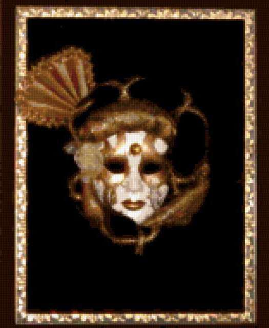 Ориентировочно так, схема вышивки «Маска», созданная автором VALKIRIA_E, будет выглядеть при отшиве на канве. Размер данной вышивки равен 156x190 крестов, при этом используется 38 цветов. Ключевые слова, по которым можно найти эту схему: маска, венеция, карнавал. Также, вы можете взглянуть на оригинальную картинку, соответствующую данной схеме вышивки.