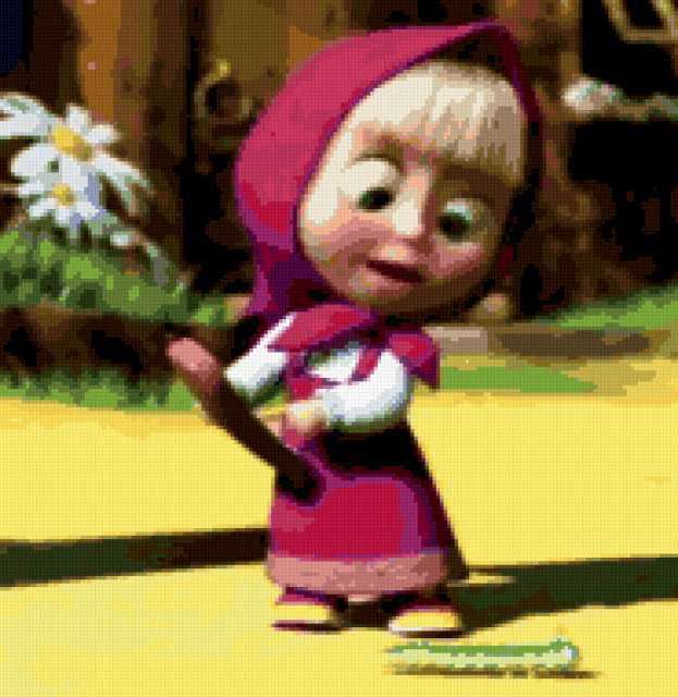 Ориентировочно так, схема вышивки «Маша и Медведь 14», созданная автором EllenS, будет выглядеть при отшиве на канве. Размер данной вышивки равен 185x190 крестов, при этом используется 62 цветов. Ключевые слова, по которым можно найти эту схему: мультик, сказка, детские, детям, девочка, маша, медведь, гусеница, подушка. Также, вы можете взглянуть на оригинальную картинку, соответствующую данной схеме вышивки.