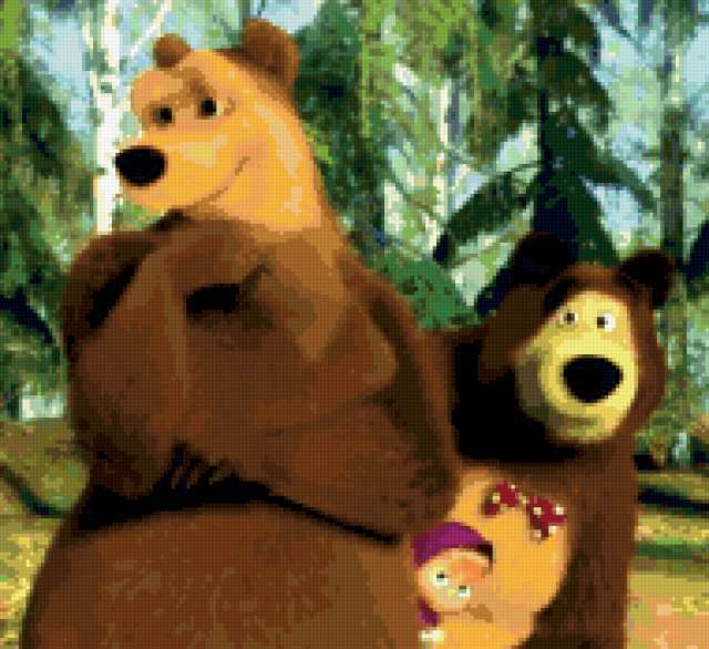Ориентировочно так, схема вышивки «Маша и Медведь 15», созданная автором EllenS, будет выглядеть при отшиве на канве. Размер данной вышивки равен 190x174 крестов, при этом используется 77 цветов. Ключевые слова, по которым можно найти эту схему: мультик, сказка, детские, детям, девочка, маша, медведь, подушка. Также, вы можете взглянуть на оригинальную картинку, соответствующую данной схеме вышивки.