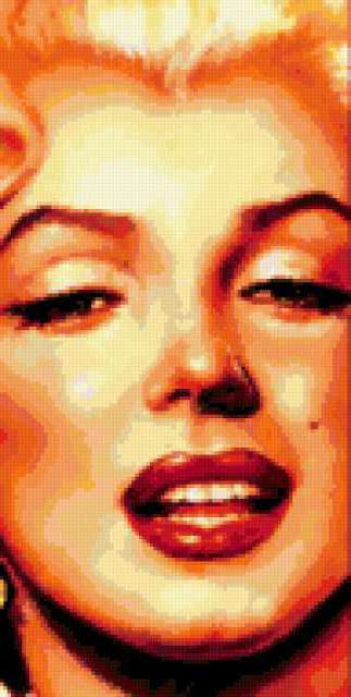 Ориентировочно так, схема вышивки «Мерилин монро триптих ч.1», созданная автором vampirlady2009, будет выглядеть при отшиве на канве. Размер данной вышивки равен 96x190 крестов, при этом используется 37 цветов. Ключевые слова, по которым можно найти эту схему: мерилин, монро, девушка, женщина, она, знаменитость, картина, портрет, норма джин. Также, вы можете взглянуть на оригинальную картинку, соответствующую данной схеме вышивки.