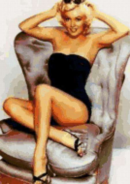 Ориентировочно так, схема вышивки «Мерилин монро», созданная автором vampirlady2009, будет выглядеть при отшиве на канве. Размер данной вышивки равен 134x190 крестов, при этом используется 58 цветов. Ключевые слова, по которым можно найти эту схему: мерилин, монро, девушка, женщина, она, знаменитость, картина, портрет, норма джин. Также, вы можете взглянуть на оригинальную картинку, соответствующую данной схеме вышивки.