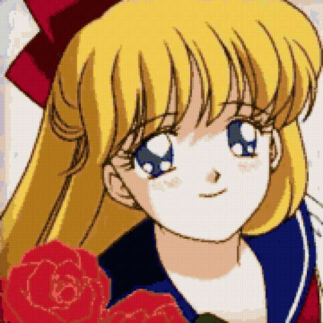 Ориентировочно так, схема вышивки «Минако», созданная автором vampirlady2009, будет выглядеть при отшиве на канве. Размер данной вышивки равен 180x180 крестов, при этом используется 33 цветов. Ключевые слова, по которым можно найти эту схему: минако, сейлор венера, сейлор воины, сейлор мун, девушка, картина, она, аниме, подушка. Также, вы можете взглянуть на оригинальную картинку, соответствующую данной схеме вышивки.