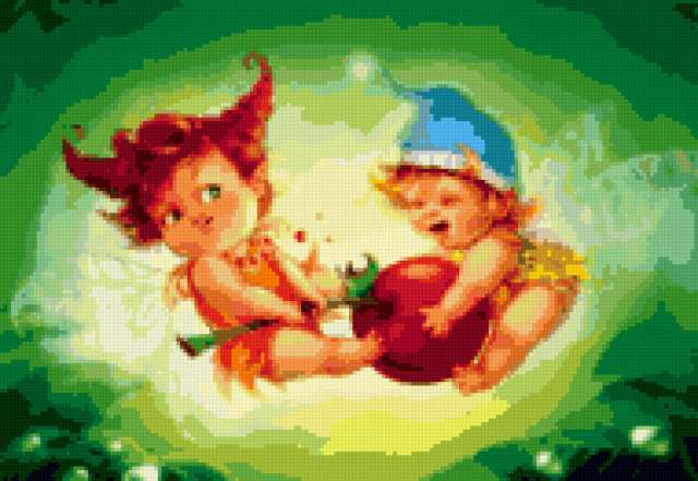 Ориентировочно так, схема вышивки «Не поделили», созданная автором rybka6, будет выглядеть при отшиве на канве. Размер данной вышивки равен 190x131 крестов, при этом используется 52 цветов. Ключевые слова, по которым можно найти эту схему: детям, в детскую, сказка, бабка, гном, эльф дедка, свинья, шарик, сова, птицы, винни, пух, петух, год, петуха, животные, кошка, котёнок, птички, река, ручей, деревня, природа, игра, картина. Также, вы можете взглянуть на оригинальную картинку, соответствующую данной схеме вышивки.