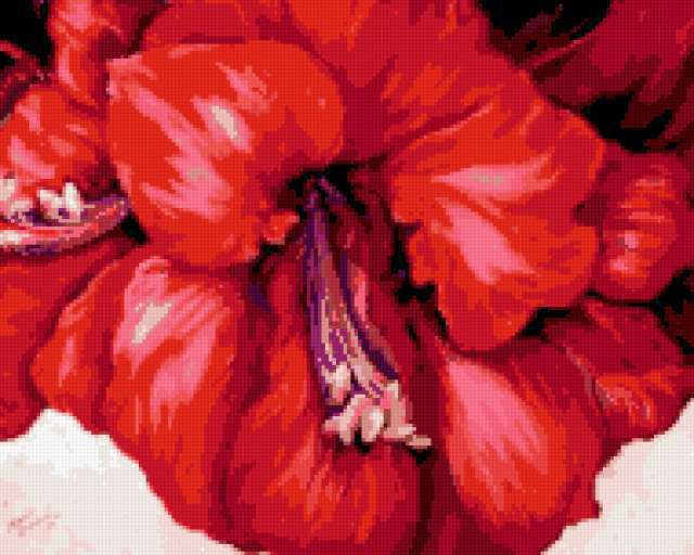 Ориентировочно так, схема вышивки «Нежные лепестки», созданная автором poltanya, будет выглядеть при отшиве на канве. Размер данной вышивки равен 190x152 крестов, при этом используется 22 цветов. Ключевые слова, по которым можно найти эту схему: амариллис, цветочки, цветок, цветы, нежные лепестки, искусство, акрил, живопись. Также, вы можете взглянуть на оригинальную картинку, соответствующую данной схеме вышивки.