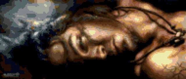 Ориентировочно так, схема вышивки «Незнакомец», созданная автором Marina22, будет выглядеть при отшиве на канве. Размер данной вышивки равен 190x81 крестов, при этом используется 37 цветов. Ключевые слова, по которым можно найти эту схему: юноша. Также, вы можете взглянуть на оригинальную картинку, соответствующую данной схеме вышивки.