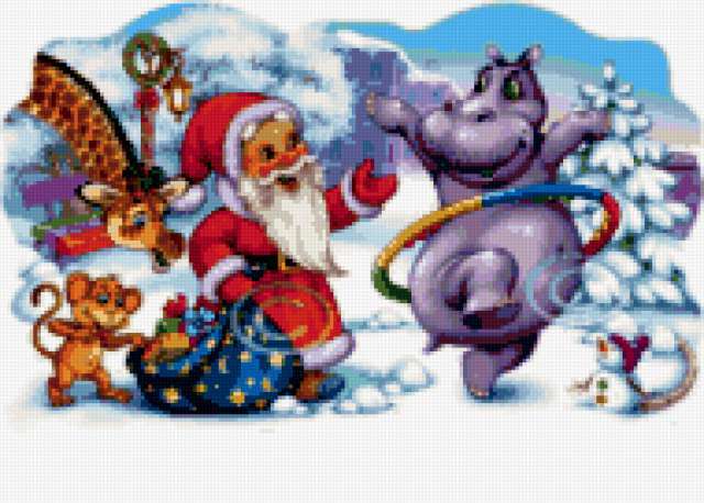 Ориентировочно так, схема вышивки «Новогодние картинки», созданная автором VA903M, будет выглядеть при отшиве на канве. Размер данной вышивки равен 190x136 крестов, при этом используется 69 цветов. Ключевые слова, по которым можно найти эту схему: новогодние, детские, новый год, дед мороз. Также, вы можете взглянуть на оригинальную картинку, соответствующую данной схеме вышивки.