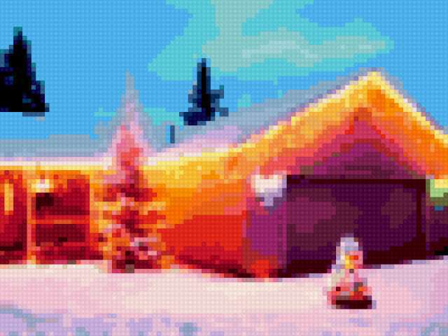 Ориентировочно так, схема вышивки «Новогодний дом», созданная автором Krakoziabrik, будет выглядеть при отшиве на канве. Размер данной вышивки равен 100x75 крестов, при этом используется 65 цветов. Ключевые слова, по которым можно найти эту схему: новый год. Также, вы можете взглянуть на оригинальную картинку, соответствующую данной схеме вышивки.