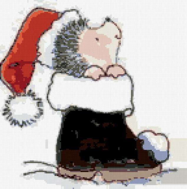 Ориентировочно так, схема вышивки «Новогодний ёжик», созданная автором poltanya, будет выглядеть при отшиве на канве. Размер данной вышивки равен 144x145 крестов, при этом используется 20 цветов. Ключевые слова, по которым можно найти эту схему: ёжик, рождество, ёжики, новогодний ёжик, зверушки, новый год, снежинки, рождество, подарки, лыжи, снег, детская картина, детские сюжеты, детки, ёж, ежи. Также, вы можете взглянуть на оригинальную картинку, соответствующую данной схеме вышивки.