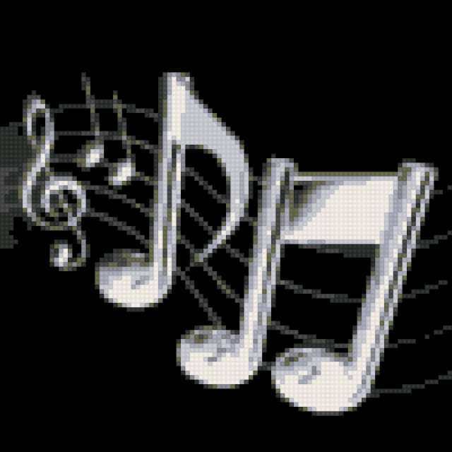 Ориентировочно так, схема вышивки «Ноты 100на100», созданная автором kudya, будет выглядеть при отшиве на канве. Размер данной вышивки равен 100x100 крестов, при этом используется 8 цветов. Ключевые слова, по которым можно найти эту схему: ноты. Также, вы можете взглянуть на оригинальную картинку, соответствующую данной схеме вышивки.
