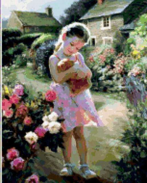 Ориентировочно так, схема вышивки «Нянька», созданная автором fox-lenshik, будет выглядеть при отшиве на канве. Размер данной вышивки равен 153x190 крестов, при этом используется 84 цветов. К несчастью, автор не назначил для схемы ключевые слова. Также, вы можете взглянуть на оригинальную картинку, соответствующую данной схеме вышивки.