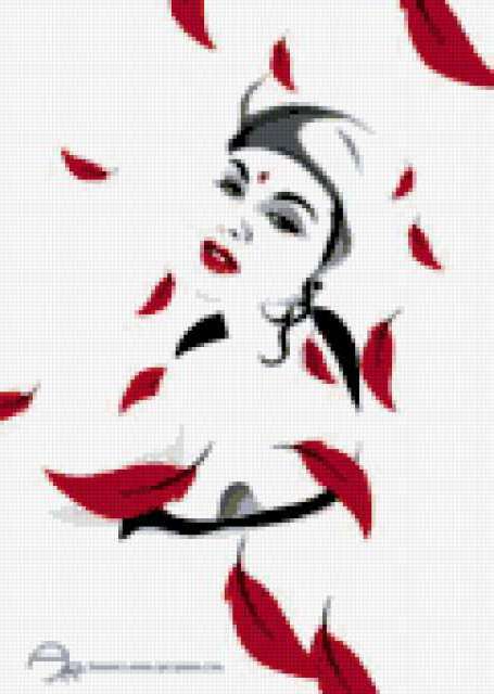 Ориентировочно так, схема вышивки «Образ дамы», созданная автором VA903M, будет выглядеть при отшиве на канве. Размер данной вышивки равен 121x170 крестов, при этом используется 24 цветов. Ключевые слова, по которым можно найти эту схему: дама, образ, девушка, листья. Также, вы можете взглянуть на оригинальную картинку, соответствующую данной схеме вышивки.