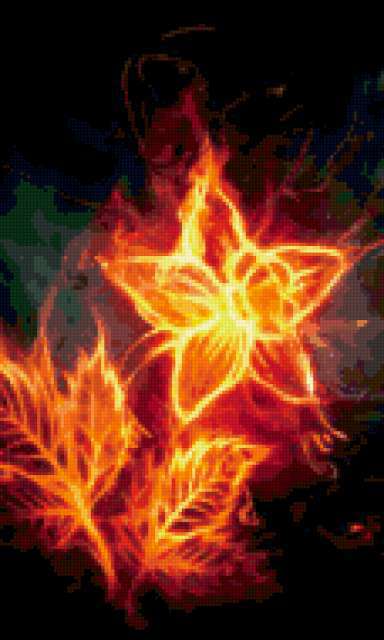 Ориентировочно так, схема вышивки «Огненный цветок», созданная автором Nataly_L, будет выглядеть при отшиве на канве. Размер данной вышивки равен 114x190 крестов, при этом используется 62 цветов. Ключевые слова, по которым можно найти эту схему: цветок. Также, вы можете взглянуть на оригинальную картинку, соответствующую данной схеме вышивки.
