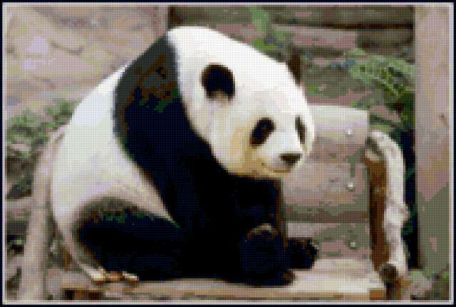 Ориентировочно так, схема вышивки «Панда», созданная автором 1978swetik, будет выглядеть при отшиве на канве. Размер данной вышивки равен 190x128 крестов, при этом используется 61 цветов. Ключевые слова, по которым можно найти эту схему: панда, медведь, животное, чернобелое. Также, вы можете взглянуть на оригинальную картинку, соответствующую данной схеме вышивки.