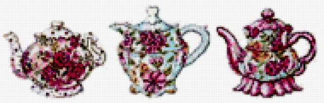 Ориентировочно так, схема вышивки «Панно "Чайнички"», созданная автором s-elena, будет выглядеть при отшиве на канве. Размер данной вышивки равен 190x61 крестов, при этом используется 62 цветов. Ключевые слова, по которым можно найти эту схему: чайники, посуда, панно, для кухни. Также, вы можете взглянуть на оригинальную картинку, соответствующую данной схеме вышивки.