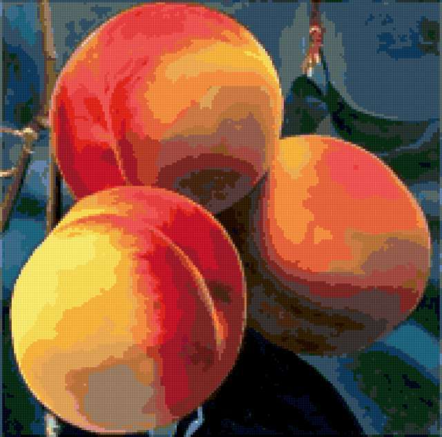 Ориентировочно так, схема вышивки «Персик», созданная автором Eddy, будет выглядеть при отшиве на канве. Размер данной вышивки равен 190x188 крестов, при этом используется 45 цветов. Ключевые слова, по которым можно найти эту схему: кухня, натюрморт, фрукты, персик. Также, вы можете взглянуть на оригинальную картинку, соответствующую данной схеме вышивки.